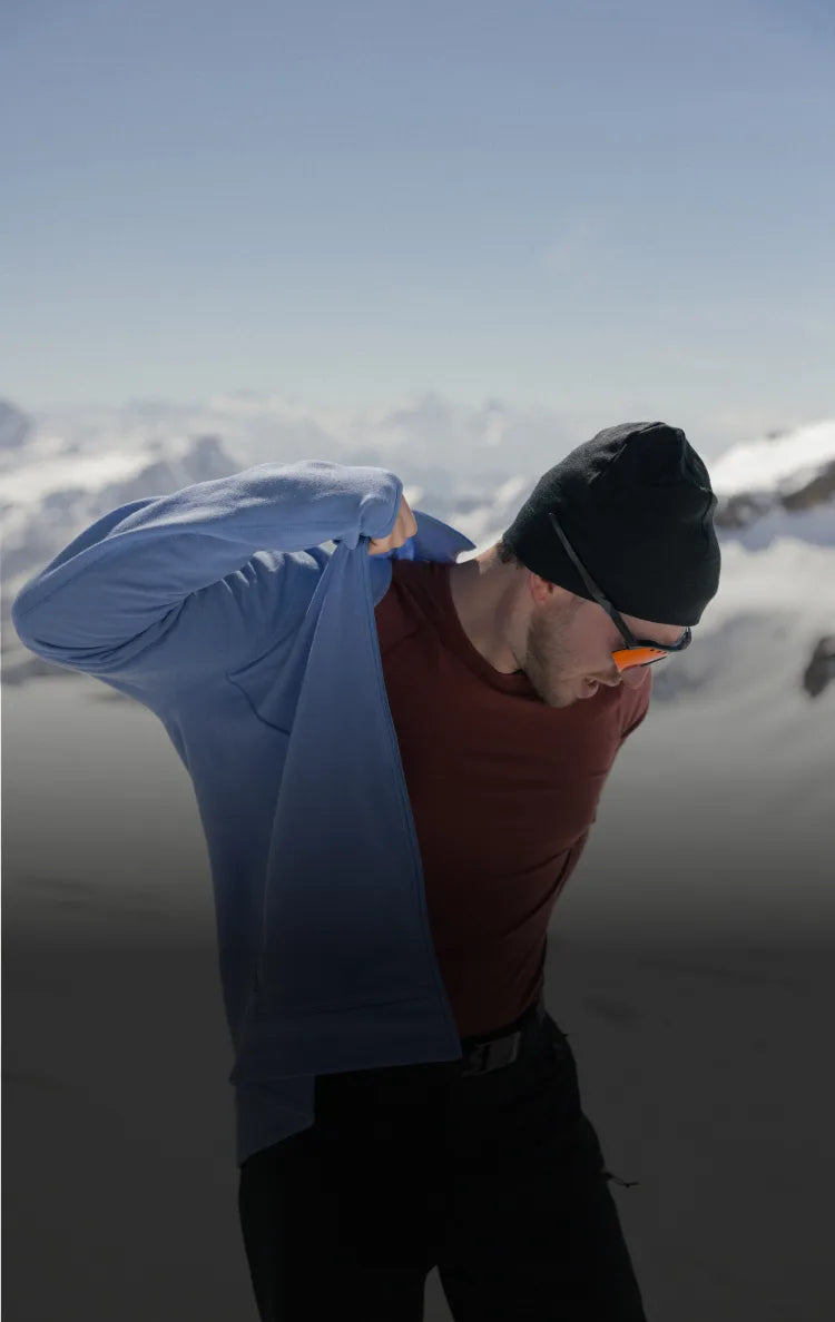 Inspired by hardy merino sheep, who thrive in scorching summers and freezing winters of New Zealand, we've adapted the incredible natural engineering of their fleece into a system of layers that support your body’s heating and cooling system.