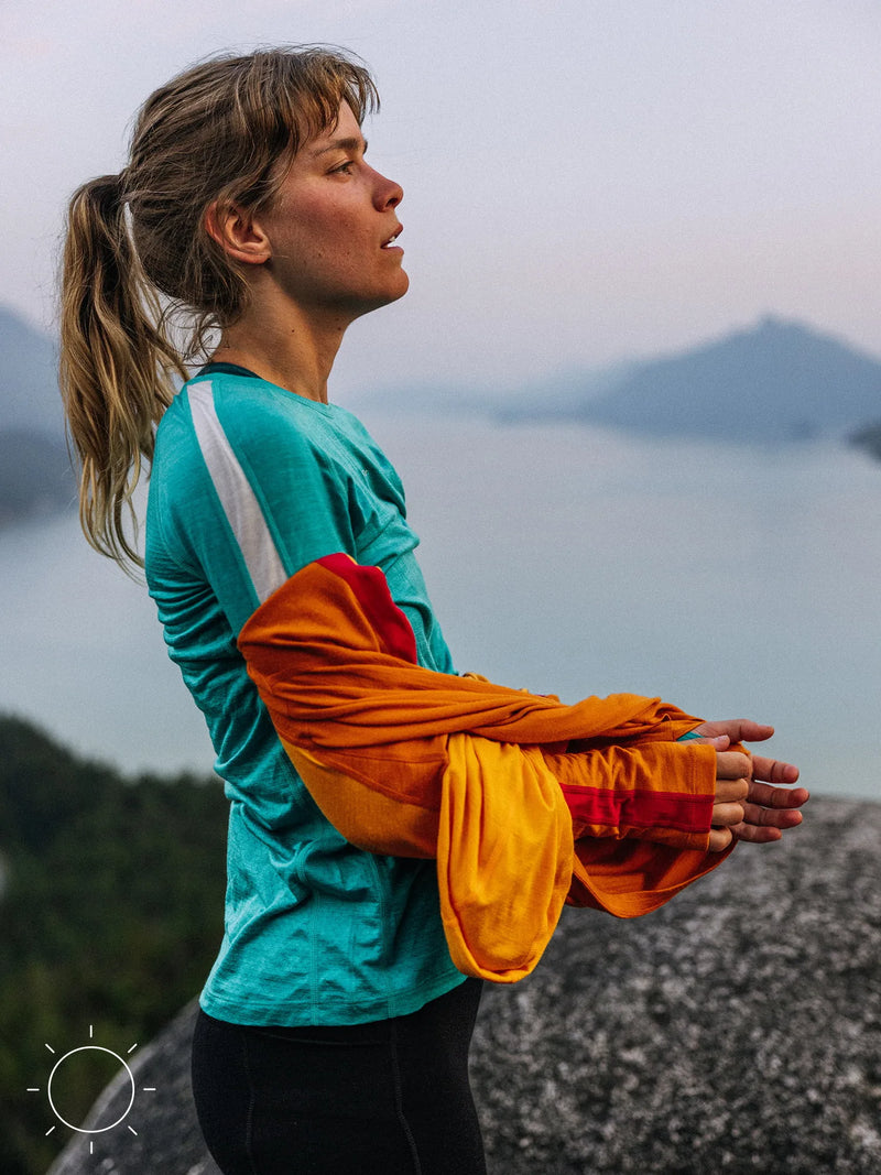 Entièrement en laine mérinos, notre couche Oasis+ se porte à même la peau. Ses caractéristiques techniques orientées vers la performance se déclinent en grands blocs de couleurs, inspirés des vêtements de sport classiques.